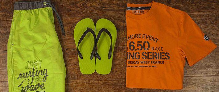 然后買了是UPF 40+的日常可以穿穿的短袖T恤和沙灘褲(航海T恤衫)