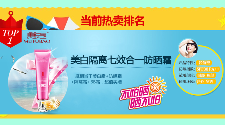 美膚寶美白隔離防曬霜SPF30擁有全新的防曬、美白配方,蘊(yùn)含獨(dú)特紫外線隔離系統(tǒng),能夠迅速在皮膚上形成高密度、高透氣的防護(hù)網(wǎng),為肌膚提供30倍的防曬保護(hù),防止肌膚曬傷曬黑抵御日常紫外線對(duì)肌膚的侵害。