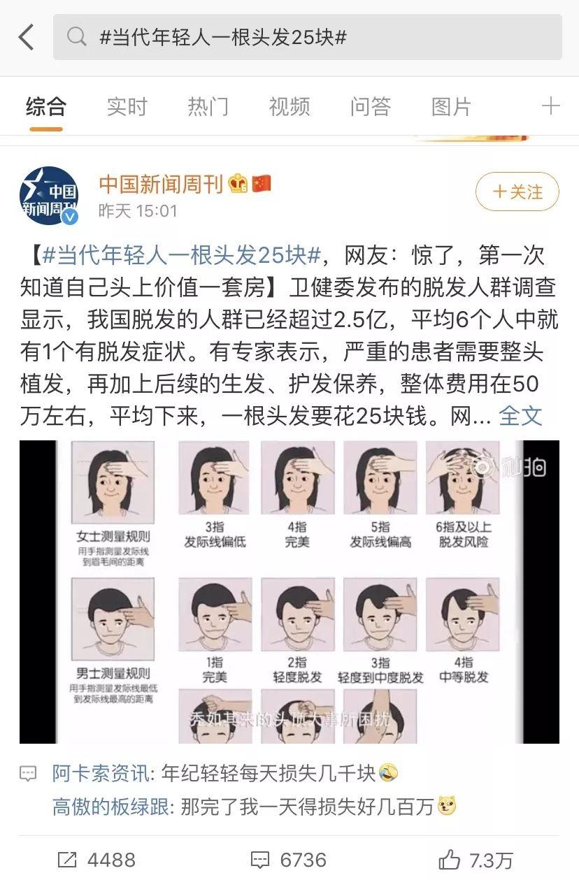 近小編被一條熱搜驚呆了,當(dāng)代年輕人一根頭發(fā)竟然要25塊;