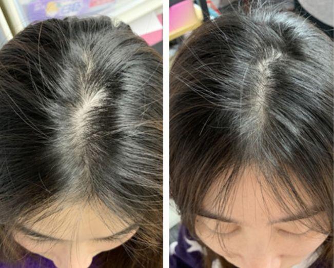用了一段時(shí)間之后,原本能開(kāi)火車的發(fā)縫也小了不少,頭發(fā)變得濃密了。
