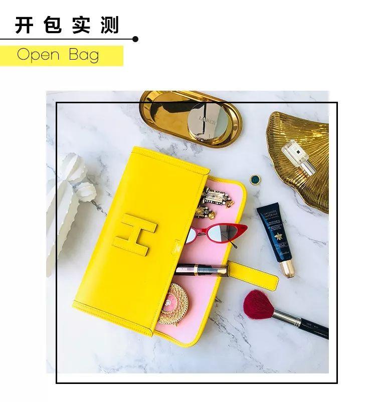 我喜歡它簡約的H鎖扣,設(shè)計(jì)簡單低調(diào),更喜歡它的顏色——耀眼的黃,并且我入手的這只不一樣,它的內(nèi)里是櫻花粉,這兩種顏色不不僅在Jiege Elan里很罕見,也很特別,在我愛馬仕的包包里也是為數(shù)不多的配色。