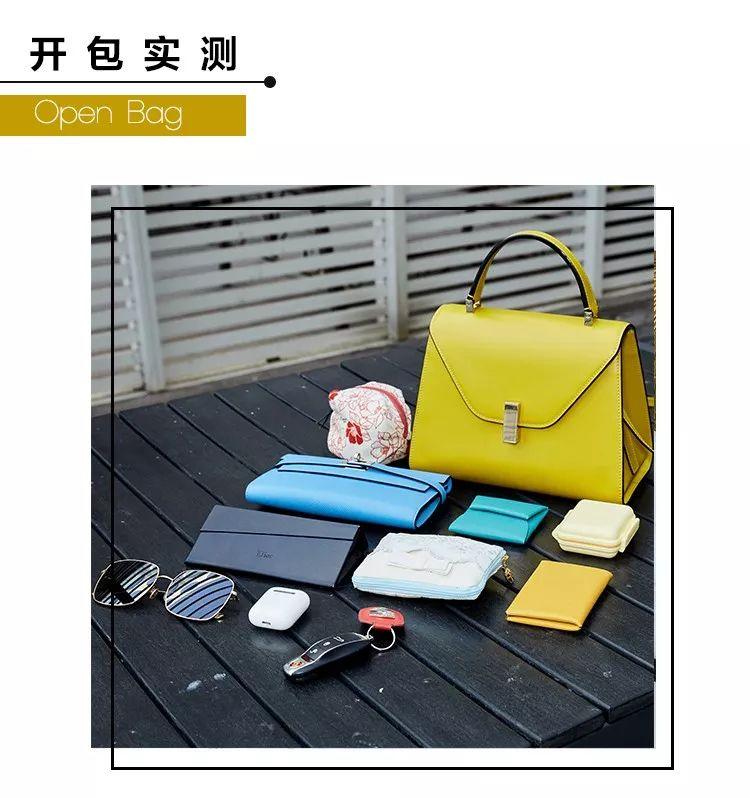 我的手袋里面經(jīng)常裝的就是錢包、車鑰匙、化妝包、首飾包、卡包、太陽鏡、藥盒這些東西,它都不在話下。