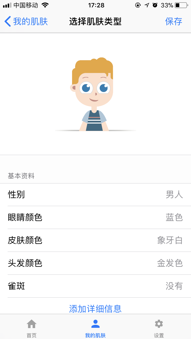 點擊下方「我的肌膚」,可以先自定義肌膚類型,方便應用后續(xù)給出方案。