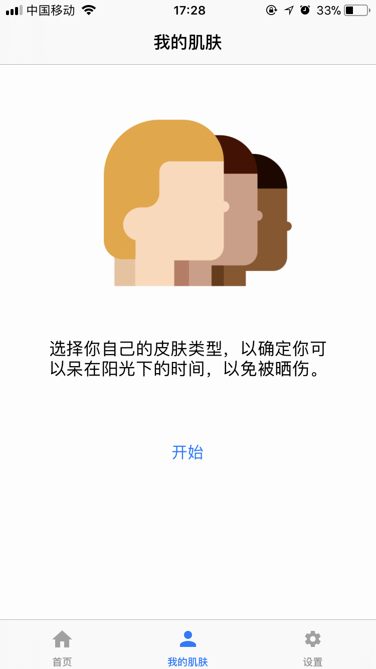 量身打造的防曬指南如果僅僅是一個提醒紫外線強度的應用,那就并沒有什么值得介紹的,隨便下個天氣應用也可以。這款應用大的亮點在于,為不同用戶量身打造防曬指南,針對不同人種、膚質(zhì),給出不同的保護措施。