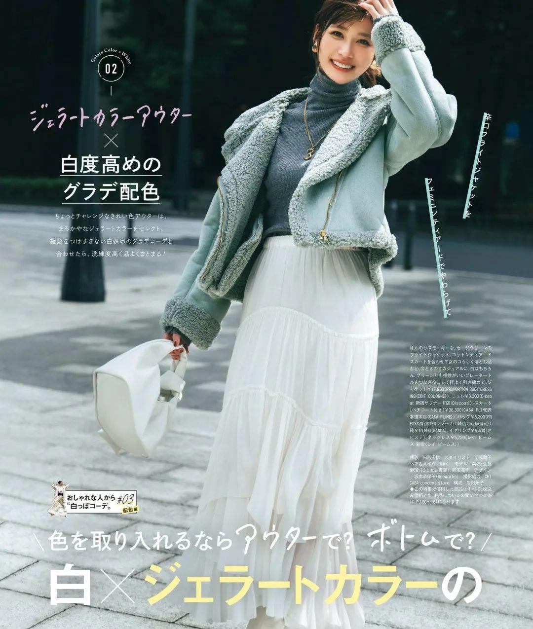 白色羊毛大衣+高領(lǐng)毛衣,直筒羊毛褲,上短下長凸顯好比例。
