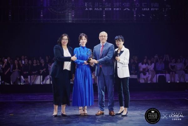 巴黎歐萊雅代表與楊紫共同領(lǐng)取“年度閃耀大獎?wù)檫x奢耀美護(hù)品牌”