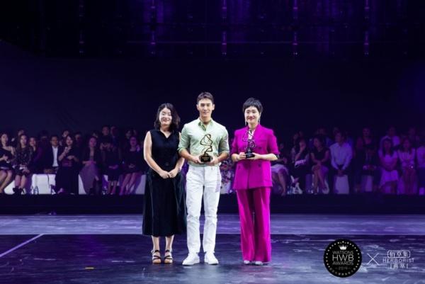 滋源代表與邢昭林一同領(lǐng)取“年度優(yōu)選護(hù)發(fā)素”獎