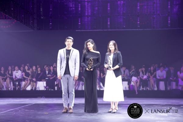 蘭瑟代表與陳漫共同領(lǐng)取“年度優(yōu)選液體腮紅”獎