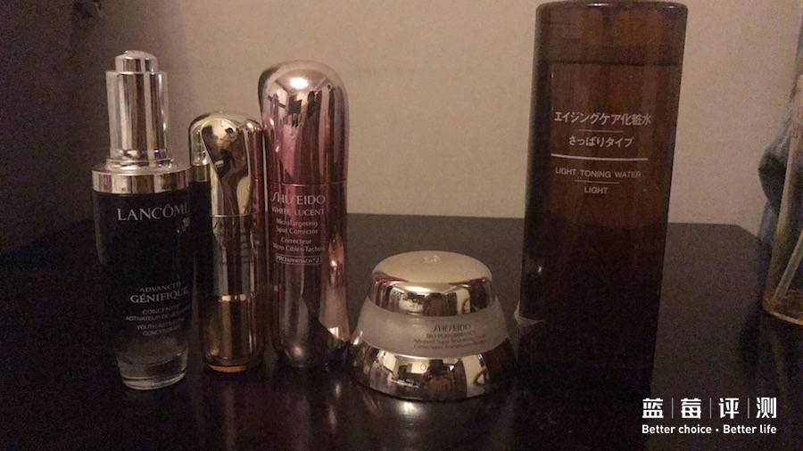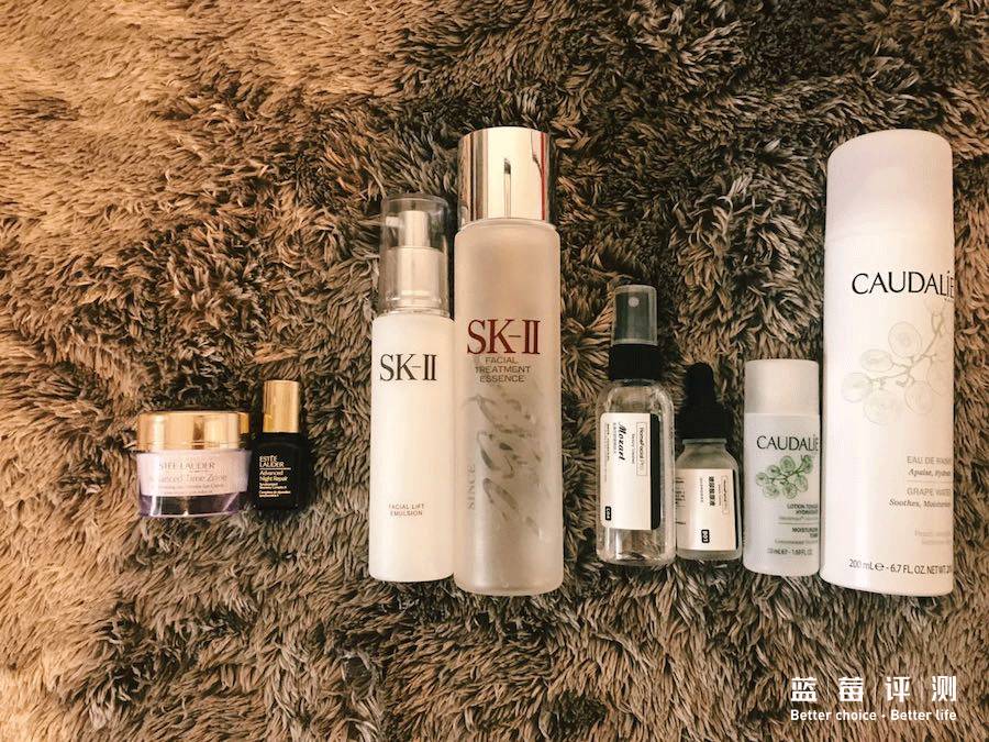 護膚步驟:植村秀綠茶潔顏油+freeplus做清潔、歐緹麗大噴、爽膚水+化妝棉二次清潔、SK-II神仙水加玻尿酸原液,后是SK-II晶致美膚乳液。