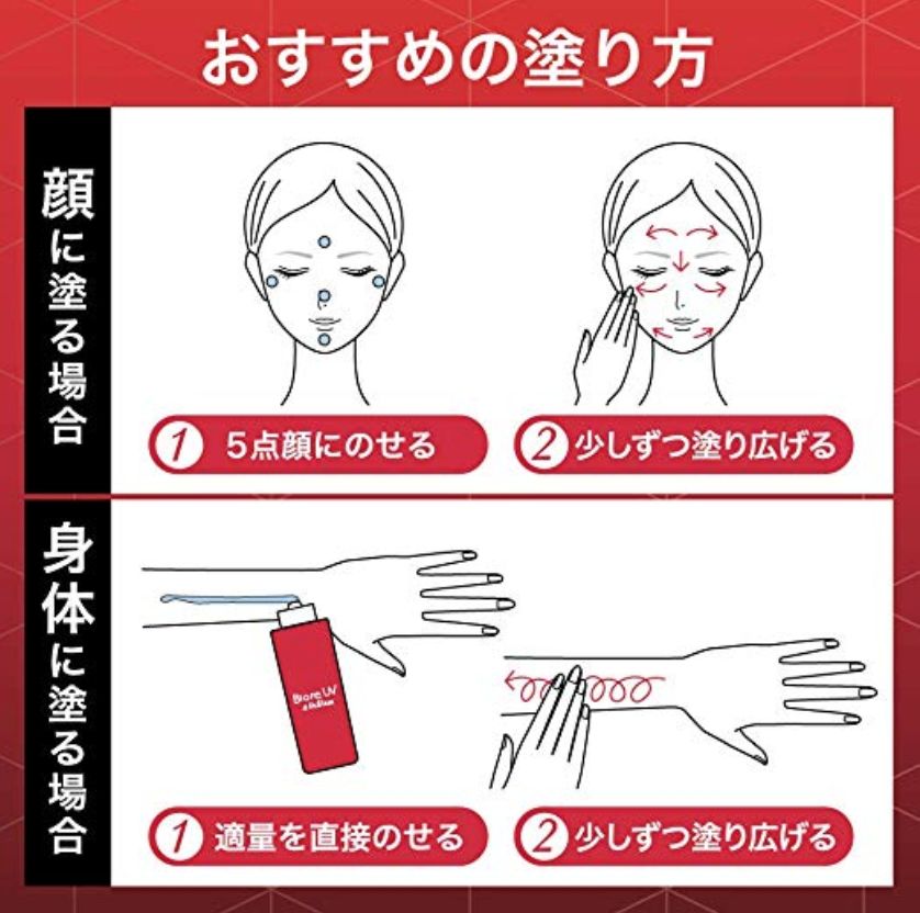 涂抹方式也很簡單:面部的情況只需要點五處,然后沿著箭頭的方向抹開。身體的話需要涂抹的時候畫圈圈,更容易吸收和起到防曬的果。