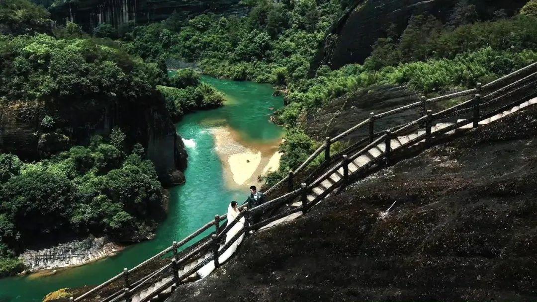 藍天之下,溪水之上,雙手相牽,柔情相擁,與相愛的人來一場愛的奔赴,武夷山水伴著溫柔清風為詩意般的婚紗照注入了靈魂。