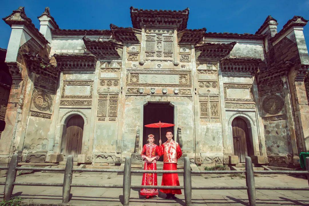 原生態(tài)的古老村落,青磚黛瓦,錯落有致,景色優(yōu)美又安靜,一條清溪緩緩地穿行在小村莊里。以經(jīng)過歲月沉淀的古建筑為背景,既有文化底蘊的厚重質(zhì)感,也有親密愛人間的甜蜜愛意。祝愿你們的愛情,如這古老建筑一樣,一起走過漫長歲月。