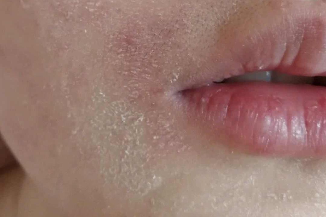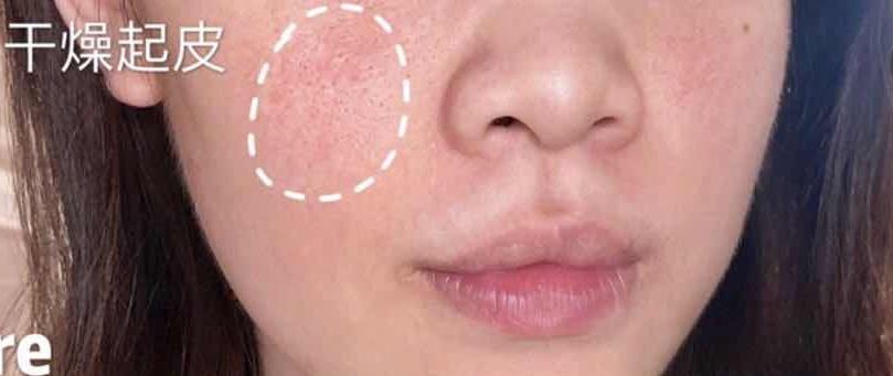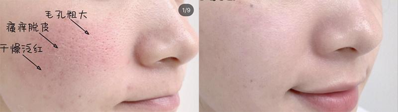 左圖服用前:干燥泛紅、脫皮、毛孔粗大