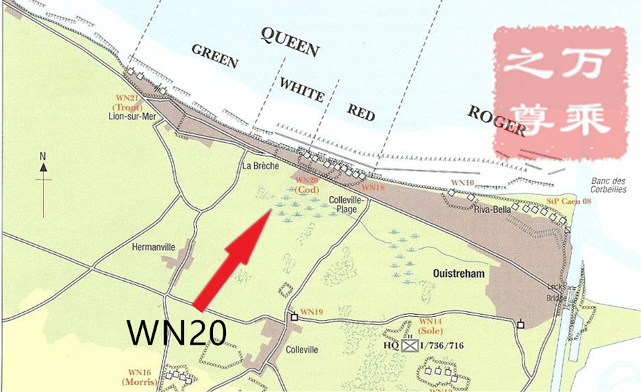 第3步兵師第8旅在劍灘的進(jìn)攻有點(diǎn)類似于美軍在猶他州的第4步兵師,他們在一條只有兩個(gè)營寬的狹長走廊上登陸,但因此集中了全部兵力對付一個(gè)據(jù)點(diǎn)。第一艘登陸艇在WN20據(jù)點(diǎn)以西登陸,這個(gè)據(jù)點(diǎn)一門88毫米炮以及三門50毫米基座炮。英國步兵以快的速度越過海灘,以避開對海岸線的猛烈炮火。在鐵絲網(wǎng)被突破后,WN20據(jù)點(diǎn)遭到了由第13 /18驃騎兵的DD坦克支持的兩個(gè)營的部隊(duì)的攻擊,經(jīng)過近3個(gè)小時(shí)的戰(zhàn)斗被擊敗。防御中心部分被擊潰后,海灘上的德軍基本上被消滅了,但海灘仍然受到分散的狙擊手、迫擊炮和大炮的攻擊。劍灘上的防御體系雖然沒有完全被征服,但已被徹底擊破,第185旅在前往卡昂的途中,遇到了兩個(gè)主要的防御區(qū),代號(hào)為莫里斯的WN16 炮兵陣地以及代號(hào)希爾曼的736擲彈兵團(tuán)WN17據(jù)點(diǎn),當(dāng)天下午,第一批英軍成員行進(jìn)穿過據(jù)點(diǎn)射程范圍內(nèi)的田野,150人死于機(jī)槍射擊。英國人花了一整天的時(shí)間才占領(lǐng)WN17。