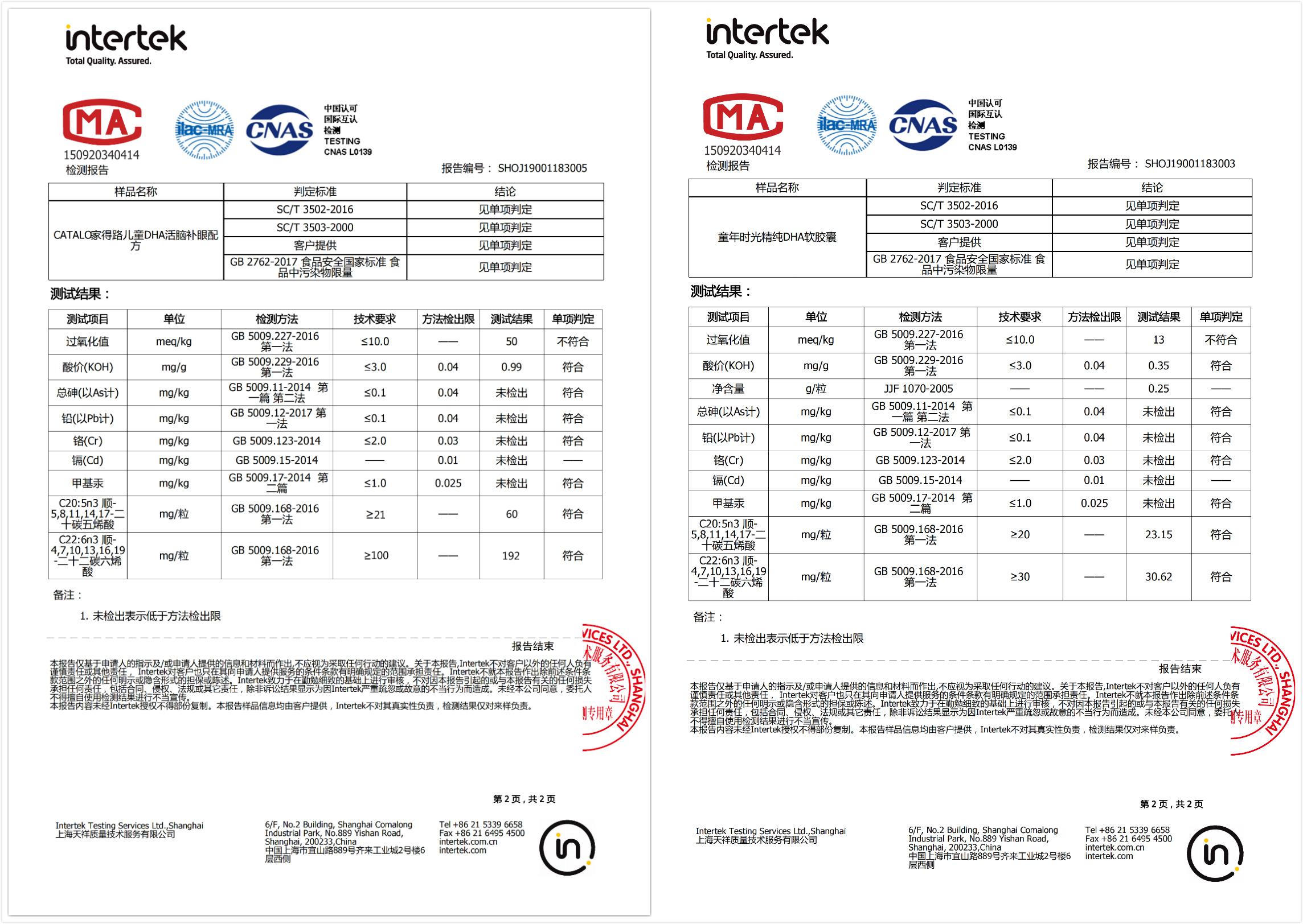DHA實(shí)測(cè)值低于標(biāo)稱值,不符合標(biāo)準(zhǔn)要求;