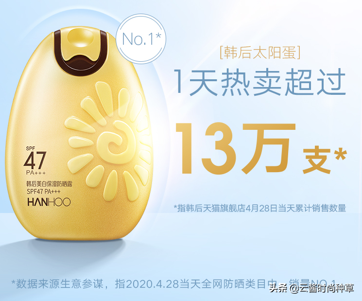 李佳琦說這就是韓后防曬霜,他還給我們介紹說,這是一款物理化學(xué)結(jié)合的高倍防曬,可防御UVA、UVB對(duì)皮膚造成的傷害,從而防止曬傷、曬黑,這是SPF50+PA+++,涂一次就能擁有長(zhǎng)達(dá)12.5小時(shí)的防護(hù)力,很多仙女反饋說不管是日常還是出海,這個(gè)防曬力足夠了。