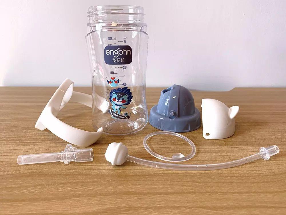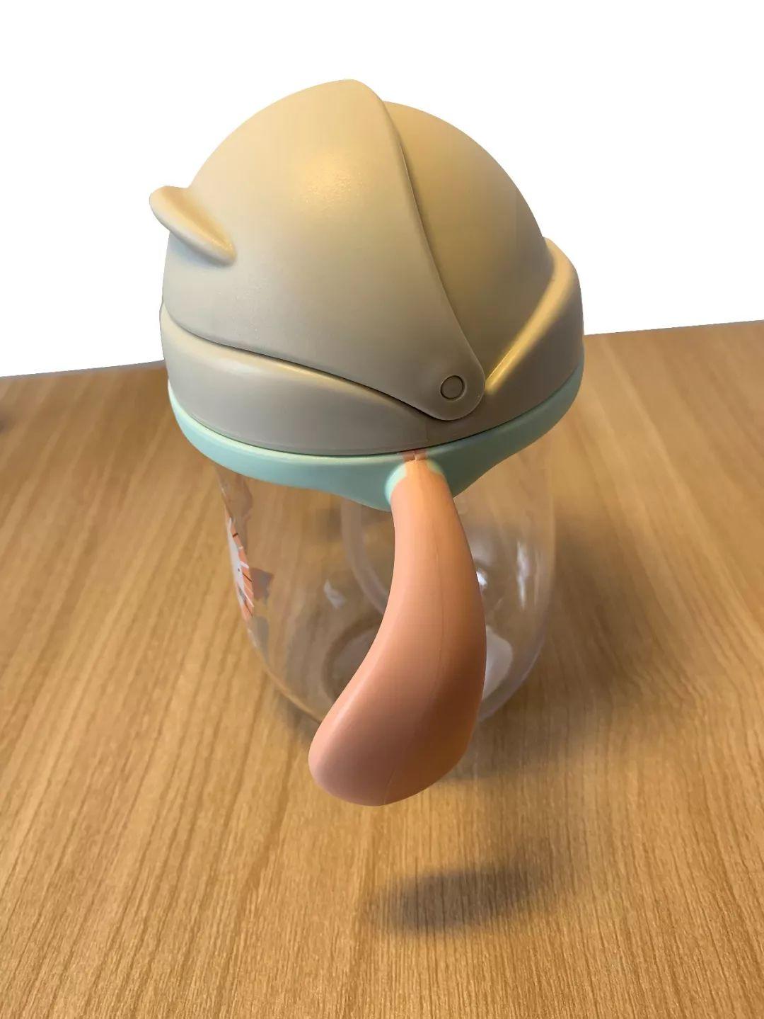 好孩子:安裝較容易。杯蓋及彈扣按鈕內(nèi)有縫隙,吸嘴呈彎曲狀,清洗可能不徹底,有殘留液體的風(fēng)險;刻度線易讀程度較高。
