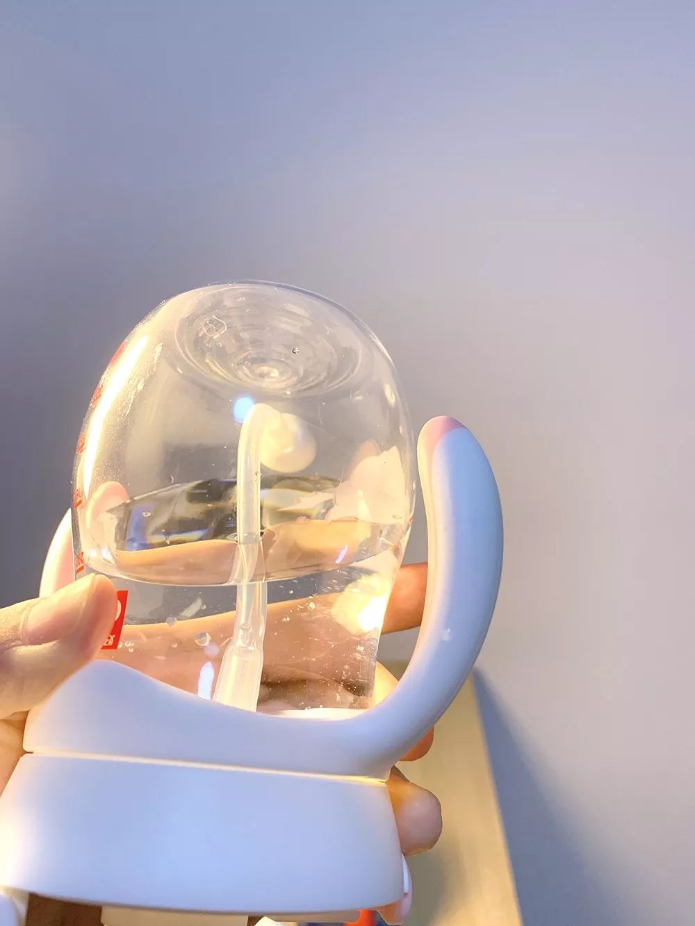 有時吸管杯中的水裝得過滿,吸嘴內(nèi)就會存水。而如果吸嘴的密封性不強,寶寶自己打開杯蓋時,吸嘴內(nèi)的水就可能濺到/噴到寶寶的身上、臉上。