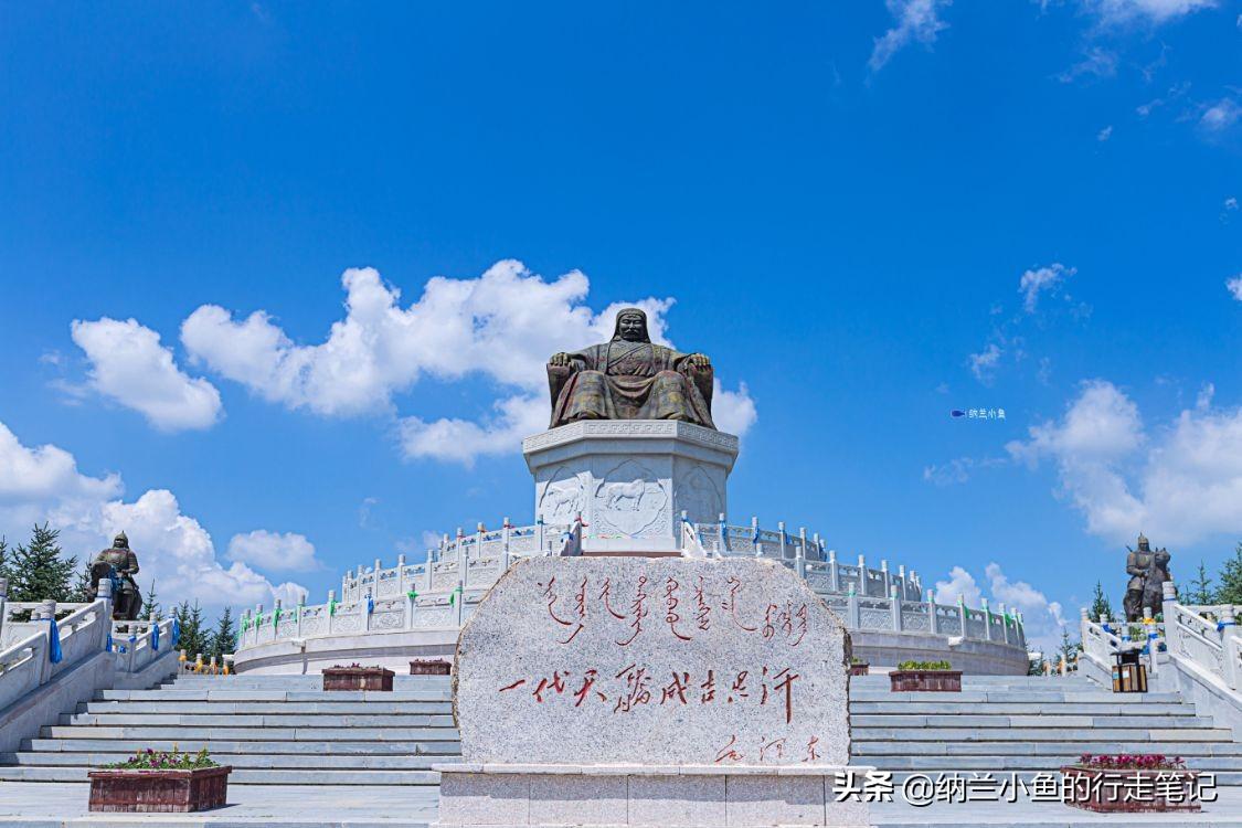 烏蘭五臺(tái)成吉思汗廣場(chǎng)上巍然屹立著高18米,寬7米的成吉思汗塑像。在藍(lán)天白云映射下的成吉思汗雕像,神情嚴(yán)靜,威武不凡。