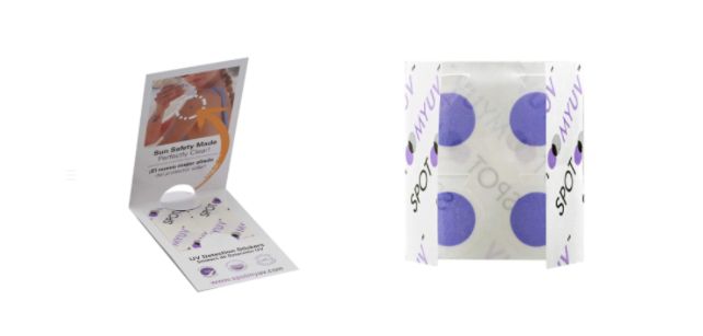 AMZ123了解到,這款貼紙的具體使用原理是:先將貼紙貼在暴露的皮膚表面,例如手臂、脖子等部位,然后再將防曬霜覆蓋上去,當防曬霜被蹭掉或防曬力不足的時候,貼紙的顏色就會發(fā)生變化,由透明色變?yōu)樽仙?/p>