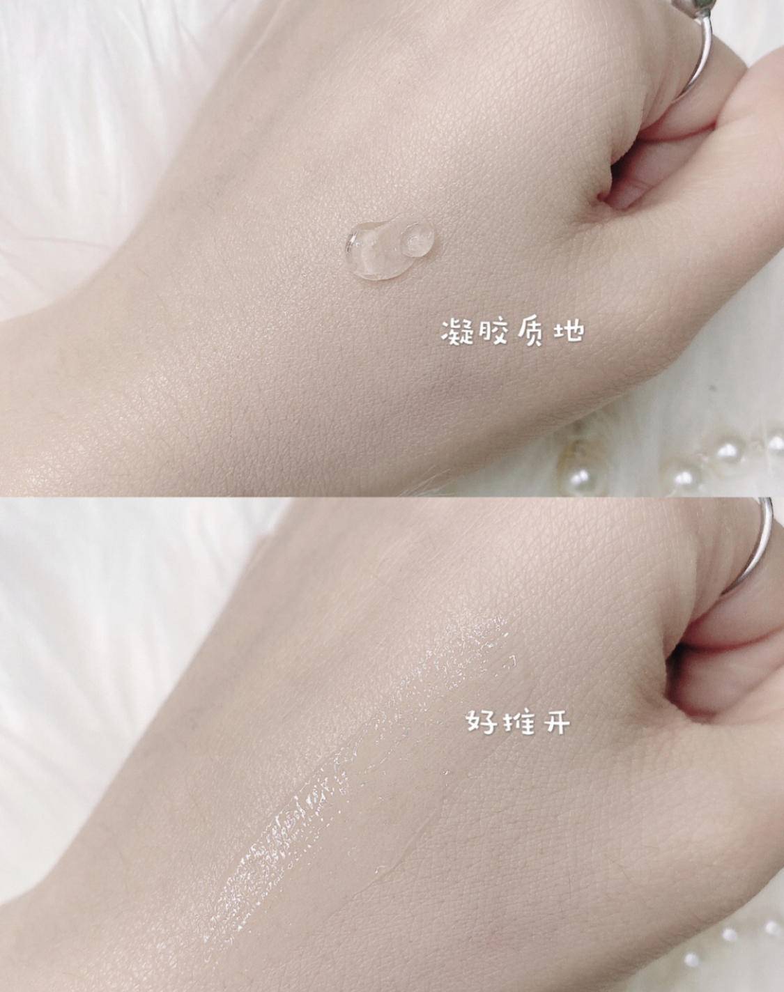 質(zhì)地是透明的水狀質(zhì)地,稍微有些粘稠感,在爽膚水后薄薄涂一層,吸收較快,破損的皮膚處會有一過性刺痛感,角質(zhì)層健康的部位無刺痛感。