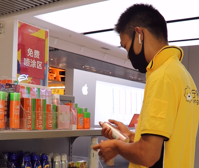 據(jù)店員介紹,活動(dòng)上線以來,除了進(jìn)店消費(fèi)的市民體驗(yàn)外,還吸引了不少戶外工作者前來??爝f員、環(huán)衛(wèi)工、外賣員等,經(jīng)過活動(dòng)區(qū)后也來“噴一噴”,加護(hù)防曬。