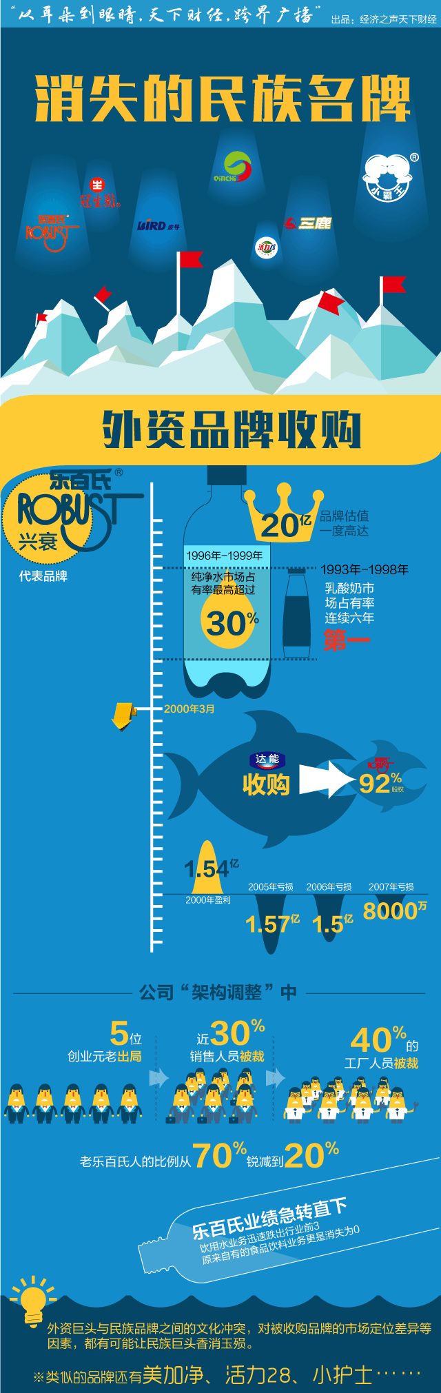 中國(guó)民族品牌艱難演變 當(dāng)形象成為中國(guó)崛起的焦點(diǎn)話題時(shí),品牌的意義就顯得格外突出。美國(guó)一家民調(diào)公司的調(diào)查表明,在各大國(guó)的形象中,品牌所占比重在不斷加重,其中以日本、德國(guó)和美國(guó)領(lǐng)先,分別為38.5%、36%和34.3%,而中國(guó)的品牌對(duì)形象的影響仍處于較低水平。近年來(lái),隨著市場(chǎng)經(jīng)濟(jì)的發(fā)展,一些中國(guó)的“”民族品牌消失了,一些新品牌脫穎而出。中國(guó)民族品牌的消亡與新生在經(jīng)歷著一個(gè)艱難的演變過(guò)程,它也在重新構(gòu)筑著中國(guó)的形象。 大上海老三件;滬上人家的品牌生活?!⊥跸壬?年前搬到上海浦東,住進(jìn)一片樓區(qū),聽(tīng)說(shuō)記者想請(qǐng)他談一談對(duì)國(guó)內(nèi)老的印象,他不由得輕嘆一聲:“老國(guó)貨品牌,現(xiàn)在家里都看不到了?!彼〕鲆槐纠舷鄡?cè),從黑白照片開始回憶,仿佛一下子回到了黃浦江那邊他生活了多年的弄堂里的一間小屋。36年前,他在那里結(jié)婚的時(shí)候,備好的是經(jīng)典的“老三件”:一對(duì)上海牌手表、一輛牌的黑色男式自行車、一輛鳳凰牌的紫紅色女款自行車,縫紉機(jī)則是“蝴蝶牌”的。王先生說(shuō),這些上海貨都是當(dāng)時(shí)國(guó)內(nèi)響的牌子,質(zhì)量沒(méi)話說(shuō)。那個(gè)年代上海人近水樓臺(tái)先得月,哪家結(jié)婚都要想方設(shè)法買全。 像這樣的國(guó)內(nèi)老,王先生還隨口說(shuō)出了很多:早上漱口的牙膏是白玉、中華,護(hù)膚常用的是美加凈,后來(lái)有電視了,有名的黑白電視品牌是“飛躍”和“金星”,西裝的老品牌是“培羅蒙”,有很長(zhǎng)一段時(shí)間,“長(zhǎng)城”“大地”風(fēng)雨衣風(fēng)靡全國(guó)……現(xiàn)在想起來(lái),王先生對(duì)這些老品牌還是贊不絕口———、鳳凰自行車好騎、經(jīng)久耐用,上海手表走幾十年照樣很準(zhǔn),培羅蒙西裝筆挺、瀟灑,還有美加凈、白玉幾十年不變的淡雅、清新讓人留戀?! 〉牵@些東西現(xiàn)在在王先生的生活中幾乎都消失了。王先生說(shuō),現(xiàn)在的人買手表,要么是瑞士表,要么是日本的卡西歐、西鐵城;洗滌、護(hù)膚品,商店里擺的幾乎都是外國(guó)牌子;服裝就更是了,子女們談?wù)撐餮b不是法國(guó)、意大利的牌子,就是英國(guó)的牌子,其實(shí)那些很多也是在中國(guó)做的,跟他們說(shuō)“長(zhǎng)城”“大地”風(fēng)雨衣,他們說(shuō)商場(chǎng)里看不到,再好也不會(huì)比“倫敦霧”更好,可“倫敦霧”什么價(jià)錢?。坎皇?位數(shù)就是5位數(shù)! 有意思的是,在國(guó)內(nèi)市場(chǎng)銷聲匿跡了的老品牌,在國(guó)外依舊有人使用。大約一個(gè)月前,本報(bào)記者在埃及開羅的一個(gè)小胡同里找到一家裁縫店,想縫補(bǔ)開了線的褲子。沒(méi)想到的是,店主杜維卡使用的竟然是中國(guó)產(chǎn)的蝴蝶牌縫紉機(jī)?!斑@臺(tái)縫紉機(jī)已經(jīng)跟我20多年了,當(dāng)初是從一個(gè)做生意的親戚那里好不容易搞到的,現(xiàn)在還是寶貝呢”,杜維卡興奮地告訴記者。記者不禁感到疑惑了,這些口碑、質(zhì)量都很好的國(guó)產(chǎn),現(xiàn)在到哪里去了呢? 或合資或兼并、跨國(guó)企業(yè)吞掉老品牌 “在上世紀(jì)七八十年代,只要是稍微有點(diǎn)名氣的國(guó)產(chǎn)貨,老百姓都會(huì)搶著去買?!被貞浧甬?dāng)年國(guó)產(chǎn)品牌的盛景,中國(guó)企業(yè)聯(lián)合會(huì)副理事長(zhǎng)李建明感慨萬(wàn)千。談到國(guó)產(chǎn)品牌因何馳騁時(shí),李建明認(rèn)為,一方面是當(dāng)時(shí)的國(guó)產(chǎn)品牌質(zhì)量確實(shí)過(guò)硬,另一方面就是當(dāng)時(shí)的中國(guó)市場(chǎng)沒(méi)有完全開放,對(duì)外國(guó)企業(yè)和品牌的進(jìn)入有許多限制和約束,給民族品牌提供了良好的發(fā)展空間??墒?,進(jìn)入市場(chǎng)經(jīng)濟(jì)以后,這些國(guó)內(nèi)的生產(chǎn)企業(yè)突然面對(duì)無(wú)比激烈的國(guó)際競(jìng)爭(zhēng),對(duì)手又都是國(guó)際巨頭,巨大的壓力下,有些企業(yè)消亡了,有些接受了跨國(guó)公司的合資或兼并。有一組數(shù)據(jù)極為觸目驚心:90%的中外合資合作企業(yè),使用的是外國(guó)投資方的商標(biāo);目前我國(guó)八大飲料公司已有7家被美國(guó)的可口可樂(lè)或百事可樂(lè)吞并;四大年產(chǎn)量超8萬(wàn)噸的洗衣粉廠被外企吃掉了3個(gè);國(guó)外品牌在化妝品市場(chǎng)占75%?! 】鐕?guó)企業(yè)想進(jìn)入中國(guó),通常會(huì)選擇與中國(guó)的本土合資,大眾、寶潔等品牌都是這樣進(jìn)入中國(guó)的。用品牌專家李光斗的話說(shuō),跨國(guó)公司對(duì)中國(guó)品牌的策略歷來(lái)都是:“打得贏就打,打不贏就買,買了之后就束之高閣?!睂?duì)于價(jià)值較大的中國(guó)品牌,外商一般不會(huì)買斷其所有權(quán),而是以較少的資金買斷其使用權(quán)。合資后,外商一般會(huì)利用自己的控股決策權(quán),有意把中方品牌安排在低檔產(chǎn)品上,或干脆將中方品牌棄之不用,同時(shí)大力培育外方品牌。中方品牌合資后若幾年不用,就會(huì)被消費(fèi)者逐漸淡忘。而中國(guó)企業(yè)出于缺乏資金、管理經(jīng)驗(yàn)和技術(shù)的現(xiàn)實(shí)狀況,渴望從與外企的合資和