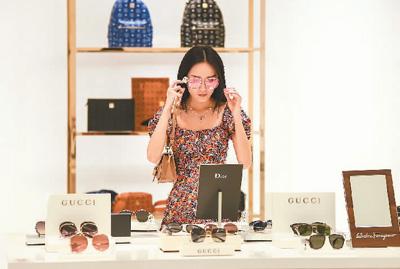 近日,海南三亞國(guó)際免稅城在海南三亞市增開(kāi)了兩家免稅體驗(yàn)店。顧客可在免稅體驗(yàn)店內(nèi)體驗(yàn)商品后,在網(wǎng)上下單購(gòu)買(mǎi)。圖為一名顧客在新開(kāi)于三亞紅樹(shù)林度假酒店內(nèi)的免稅體驗(yàn)店體驗(yàn)商品。 蒲曉旭攝(新華社發(fā))
