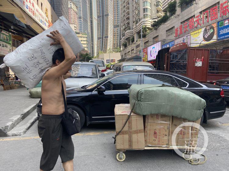 每天早上7點,冉光輝就從新華路的家里步行到他的“大本營”——朝天門大正商場。手機里有前一天收到的送貨任務,他要做的就是趕往商鋪驗貨、打包、背下樓。