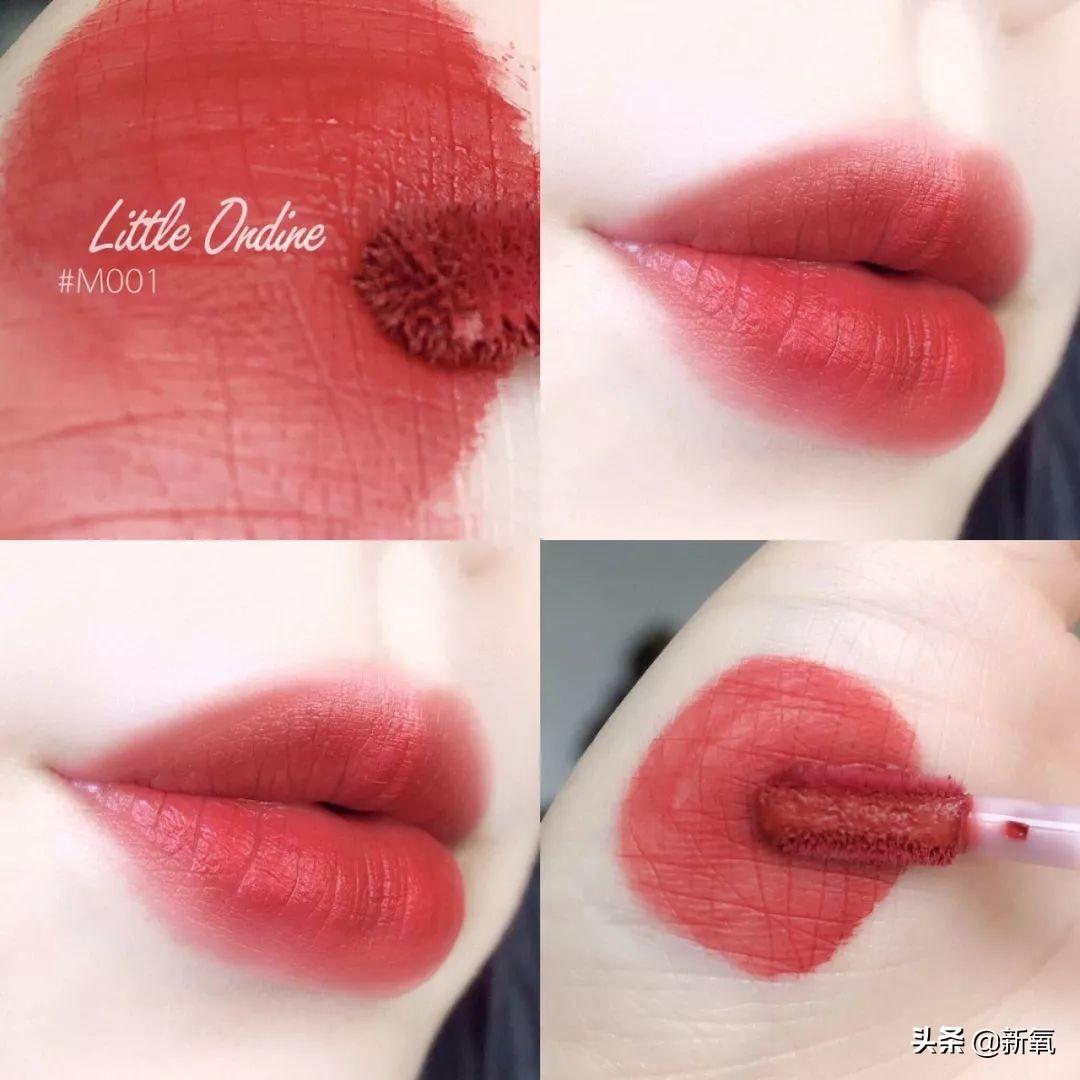 明星色號很多。比如:M002水霧紅。這支泫雅也有推薦過,是顯白的山楂紅。紅得明暗正好,不土不村不出錯。甚至厚涂顯得嘴巴都飽滿了很多。