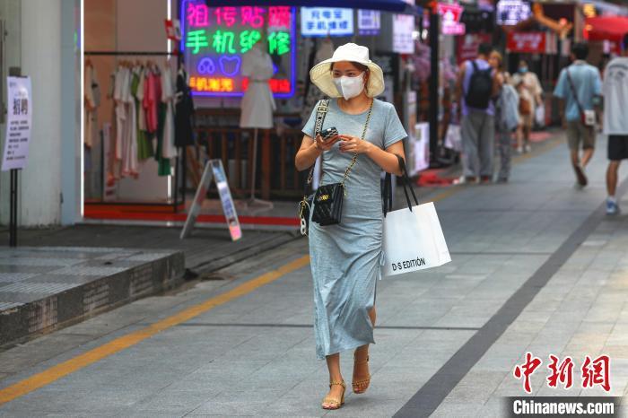 7月7日,在江西南昌萬達(dá)金街,市民戴帽清涼出行。 劉力鑫 攝