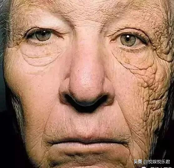 因左臉長期受紫外線老化的傷害