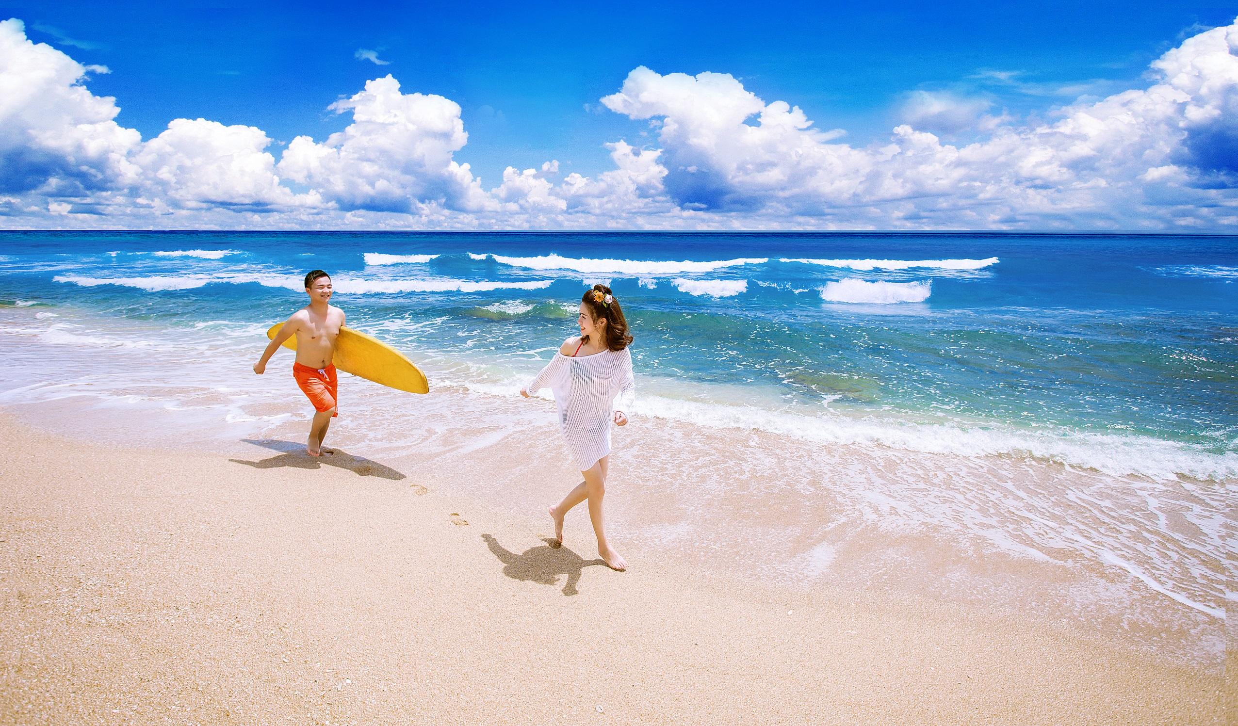 3、當然,海南大部分都是觀海。海南有1600多公里的海岸線。它擁有該國美麗的海灘。這里的海灘白而細膩,坡度柔和,海水清澈透明。在國內和國外度假勝地很少見。優(yōu)質的沙灘,連同椰子灌木、對著藍天白云,享受陽光和海灘,無需出國,海南島不會讓您失望。您還可以看到玩到不同風格的水上游樂項目。