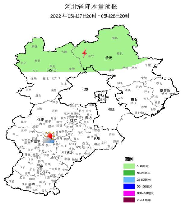 明天夜間到28日,張家口北部、承德北部多云,壩上地區(qū)短時陰有分散性雷陣雨或零星陣雨,其他地區(qū)晴間多云。