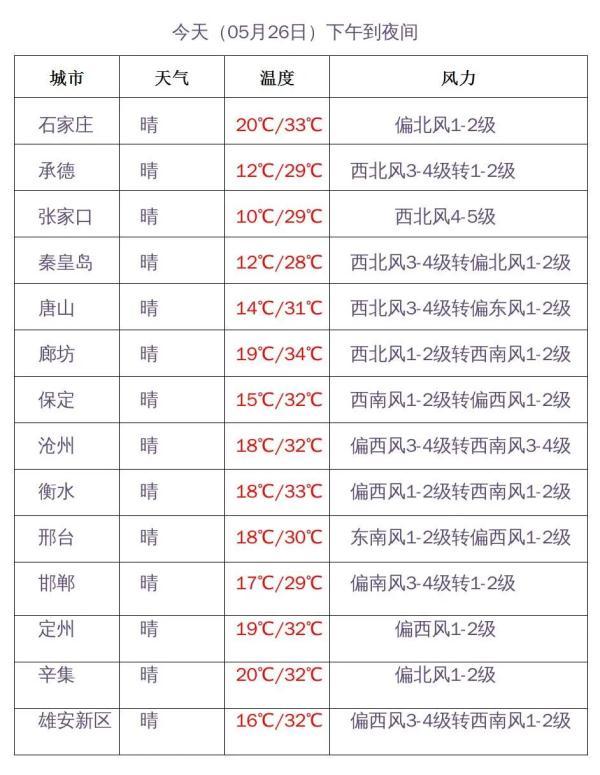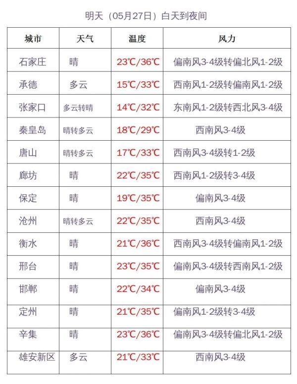 河北省主要城市預(yù)報