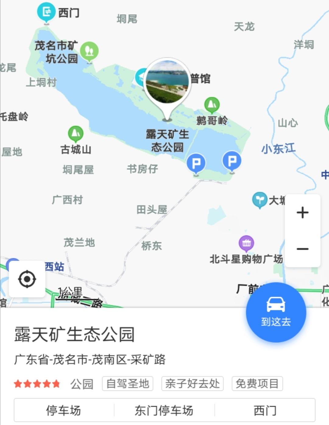 免費進入,不需要門票地理位置:茂名露天礦生態(tài)公園是位于廣東省茂名市區(qū)西北角,可以從地圖上看到景點的具體位置,自駕車的話可以導航到景點的停車場,茂名露天礦生態(tài)公園里設了兩個停車場,選擇臨時停車場停,免費的,車位也是蠻多的