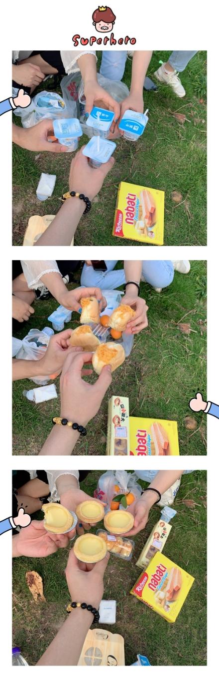 野餐:三明治、小零食:如辣條、薯片、雞腿、雞翅等一些零食