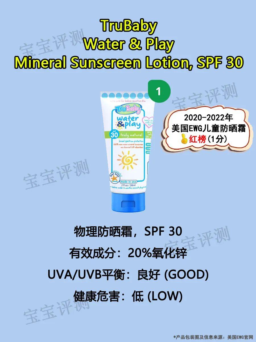 產(chǎn)品1. TruBaby Water & Play Mineral Sunscreen Lotion, SPF 30