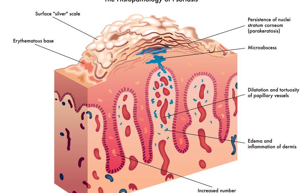 銀屑病分幾型,常見(jiàn)的是斑塊型,還有指甲型、鱗屑型、點(diǎn)滴型、皮褶型、膿皰型和紅皮病型,外加銀屑病關(guān)節(jié)炎。和其他皮膚病一樣,銀屑病的病因還不是十分清楚,但比其他皮膚病好的是,這種病的病因大致了解了,主要和免疫系統(tǒng)有關(guān),是由于T細(xì)胞錯(cuò)誤地攻擊皮膚細(xì)胞,引發(fā)其他免疫反應(yīng),包括斑塊周圍皮膚血管擴(kuò)張、進(jìn)入皮膚表層的白細(xì)胞增多,這樣導(dǎo)致健康皮膚細(xì)胞和免疫細(xì)胞產(chǎn)生過(guò)多,這些新生的皮膚細(xì)胞過(guò)快地移至皮膚表層,結(jié)果死細(xì)胞和白細(xì)胞來(lái)不及脫落,導(dǎo)致斑塊形成,這是一個(gè)惡性循環(huán),除非介入,否則不會(huì)停止。