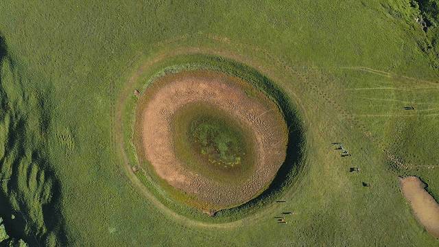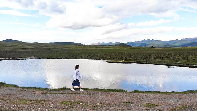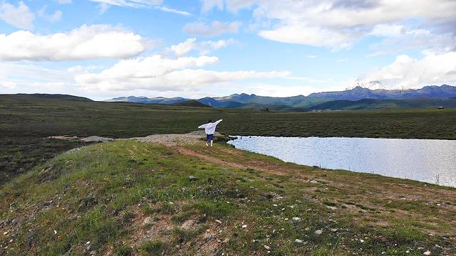 行駛半個多小時,就可以抵達傳說中“通往天堂的眼睛”——格聶之眼。導航到格聶之眼時,道路兩旁都有圍欄,右邊有一個水洼,且迷惑性較大,很容易令人誤會是格聶之眼,但真正的“眼睛”在左邊。