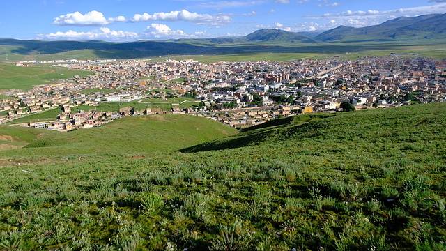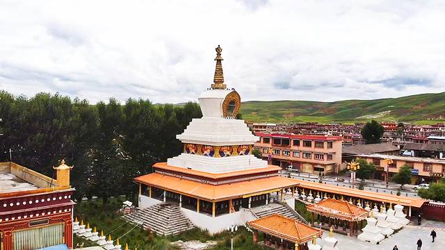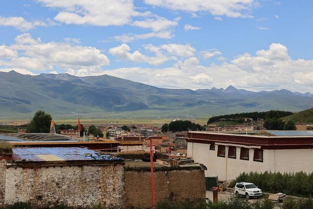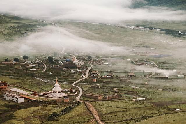 從長青春科爾寺大門往左邊的小路往上走,便能俯瞰中國大藏寨群落——千戶藏寨。