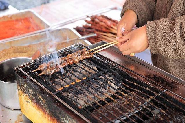 高原天氣多變,在剪子彎山埡口的時候還下著雨,7-8月份穿著襖子吃烤羊肉串取暖。