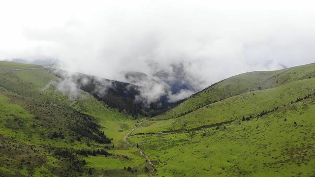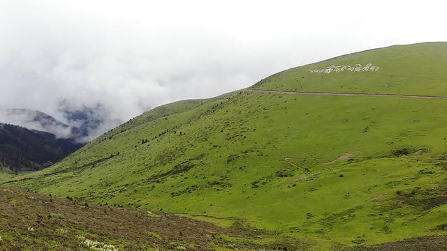 國道318旁,云端之上的康巴大草原也被雨霧蒙上嬌羞的面紗。
