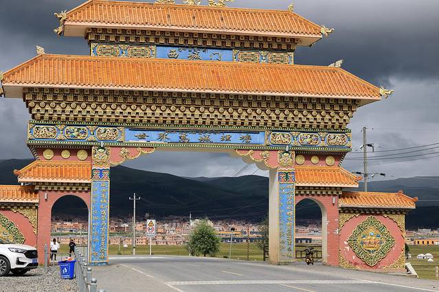 但當我們越靠近理塘縣城,天氣也逐漸晴朗,理塘東城門有許多游客打卡,大家如果要去打卡318此生必駕,建議去人少的西城門,西城門的旁邊有一大片寬闊的草原,透過城門便可以看見理塘城區(qū)。