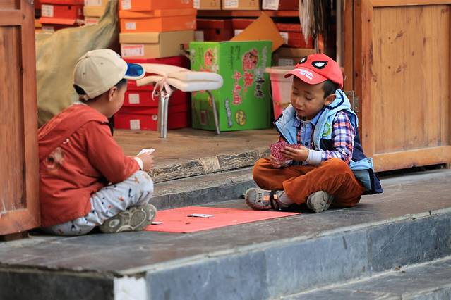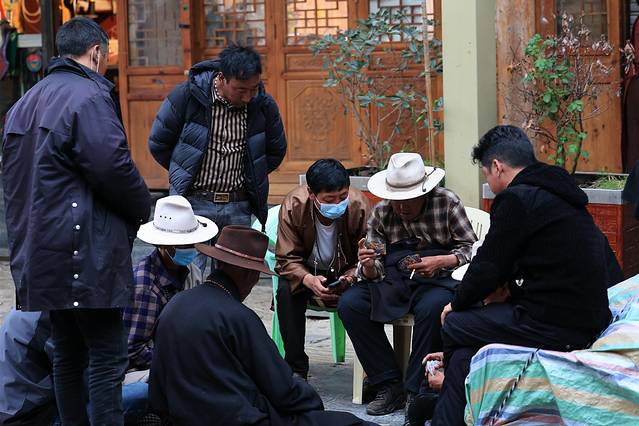 去來路步行街幾乎沒有游客,基本都是本地百姓。走進入口,便看到席地而坐、認真打牌的大人。
