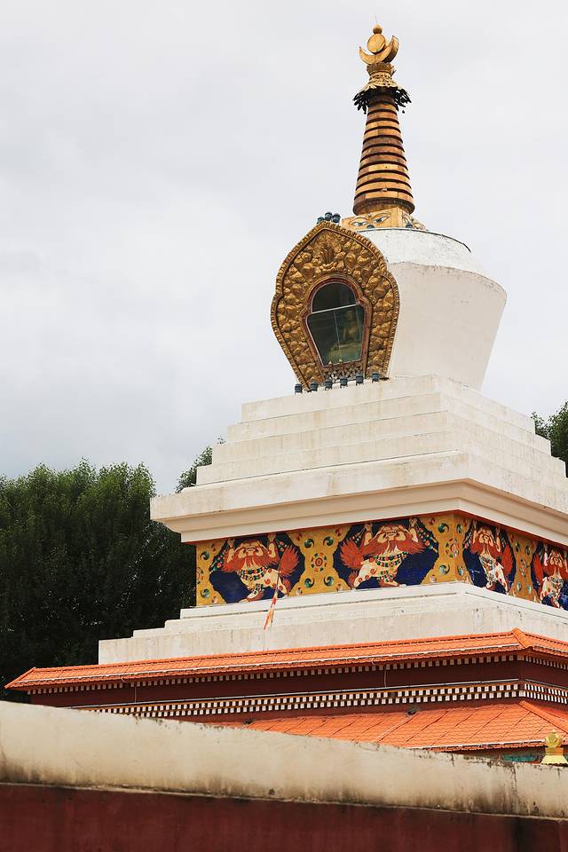 攀上后一段山坡,來到冷古寺的門前,寺外的白塔已經(jīng)有了歲月斑駁的痕跡。