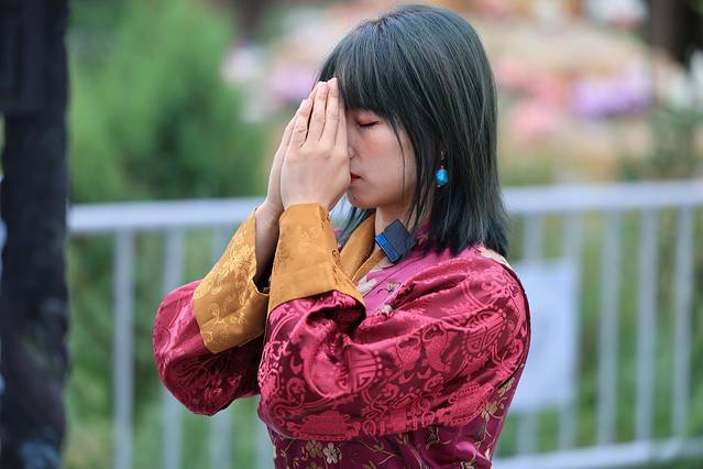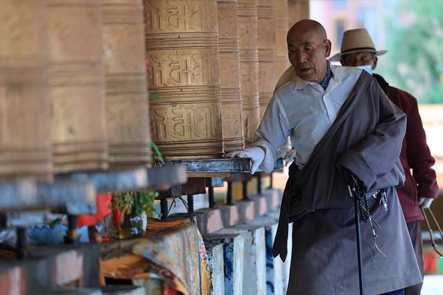 順時針轉經(jīng)筒三圈,每一次虔誠地轉動經(jīng)筒,都是一次祈福。