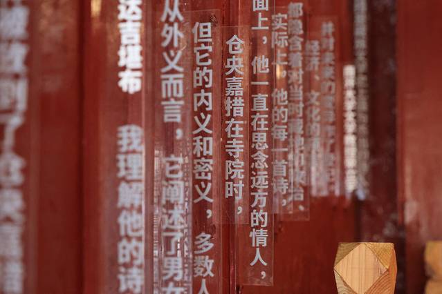 行走在倉央嘉措微型博物館內,穿梭在二樓的倉央嘉措詩歌迷宮,幾句簡單的詩句便帶人穿越了民族與時空。