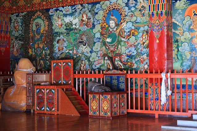 大殿建筑富麗堂皇,殿內法器琳瑯滿目,佛像千姿百態(tài),雕塑精美絕倫。如今,大殿內不允許拍照,卻值得遠赴理塘,親眼目睹寺內的神圣。