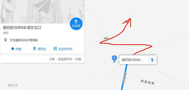 也可以直接地圖搜索004鄉(xiāng)道,經(jīng)過康巴街與004鄉(xiāng)道交叉口,路線如下:
